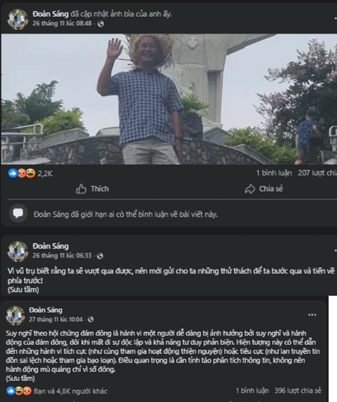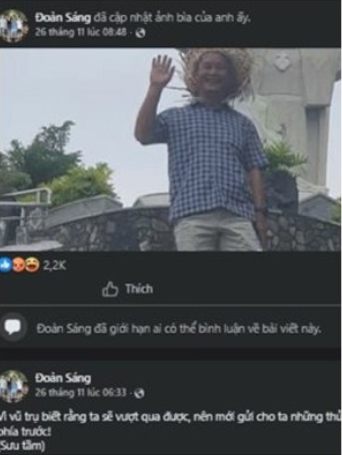 Bài đăng cuối cùng của Nguyễn Văn Sáng trên Facebook cá nhân.