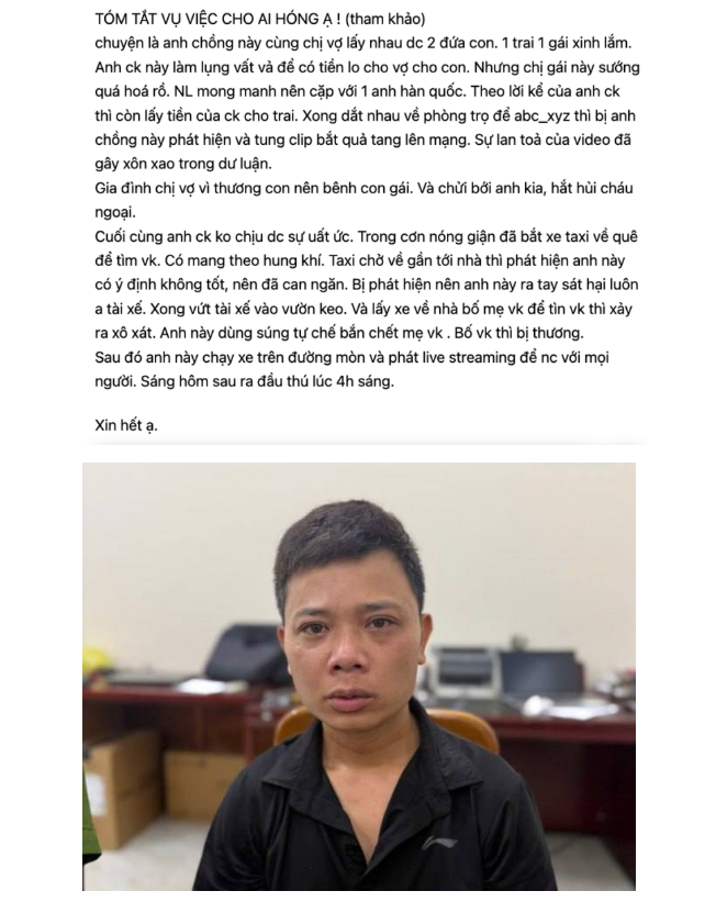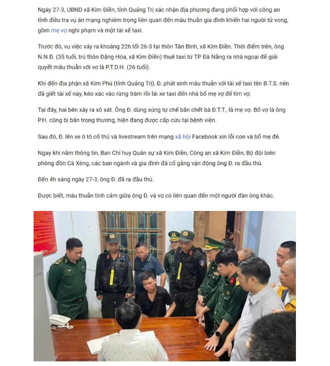 Tàn ác: Mâu thuẫn tình cảm, người chồng từ Đà Nẵng mang súng tự chế thuê taxi về Quảng Trị bắn tử vong mẹ vợ, trọng thương bố vợ, sát hại luôn tài xế taxi
